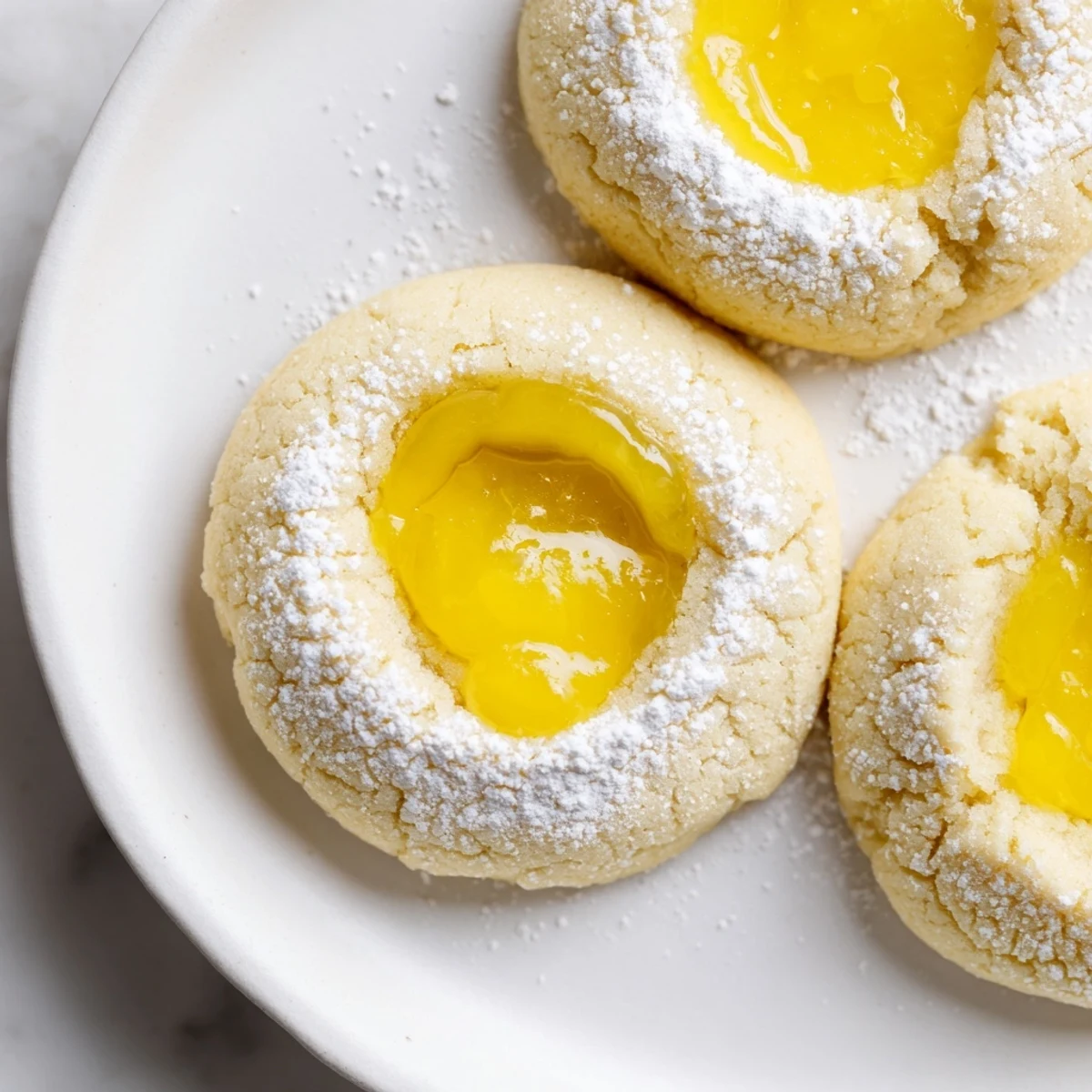 Create delightful thumbprint-style treats featuring a soft, buttery base filled with vibrant lemon curd. These golden-edged cookies offer irresistible contrast between rich dough and tangy citrus filling.